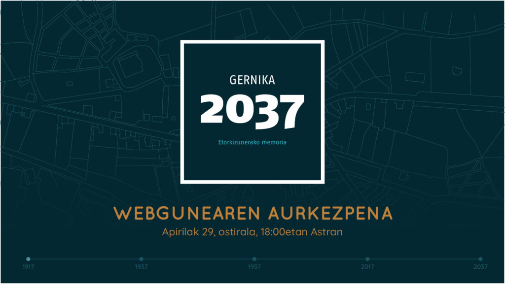 Denbora eta lan askoren ondoren, ostiral honetan, apirilak 29, arratsaldeko 18:00etan Gernika 2037 Memoriaren mapa webgunea aurkeztuko dugu Astran. Gernikako bonbardaketaren memoria gordetzeak, belaunaldi ezberdinen arteko ahalegina eskatzen du. Proiektu...